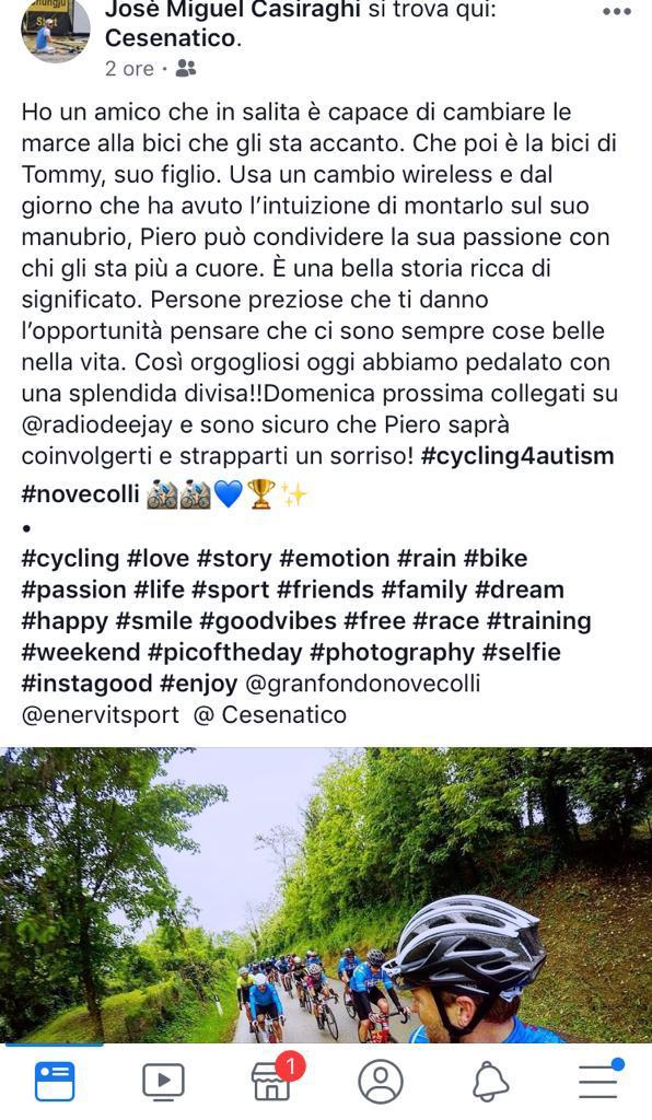 Piero con le nuove tecnologie legate all’elettronica che proprio in quegli anni entravano nel mondo del ciclismo, è riuscito ad inventarsi una bicicletta che Tommy potesse utilizzare e con cui poter seguire il papà lungo le strade della Versilia o del Lago di Como, terreni abituali di pedalate del Piero.